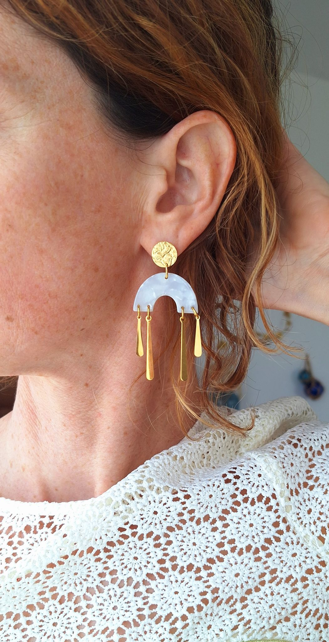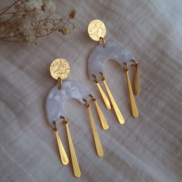 Boucles d'oreilles chandelier en acétate et goutte acier inoxydable doré