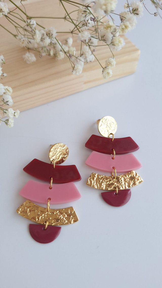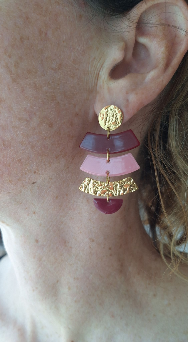 Boucles d'oreilles rectangles ondulés acétate et acier inoxydable doré
