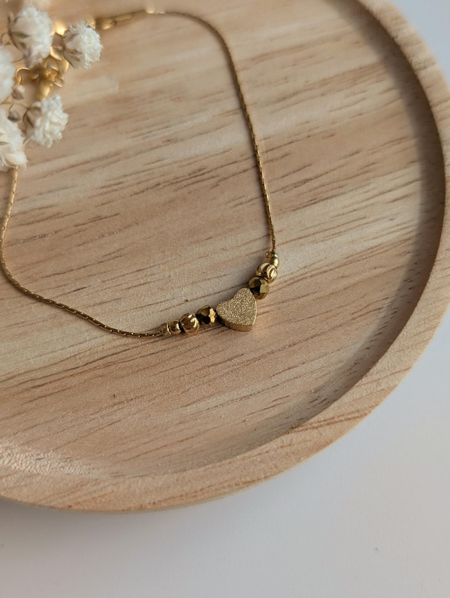- Coeur diamanté 5 mm en acier inoxydable doré.