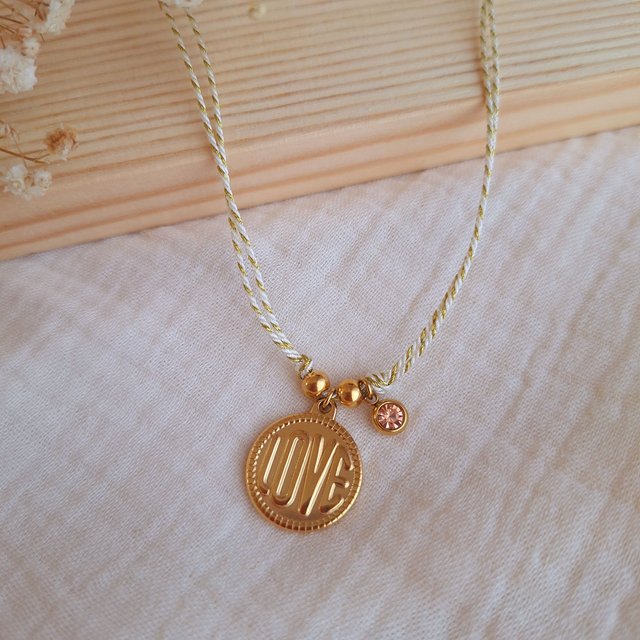 - un médaillon rond avec inscription LOVE +/- 18 mm de diamètre.